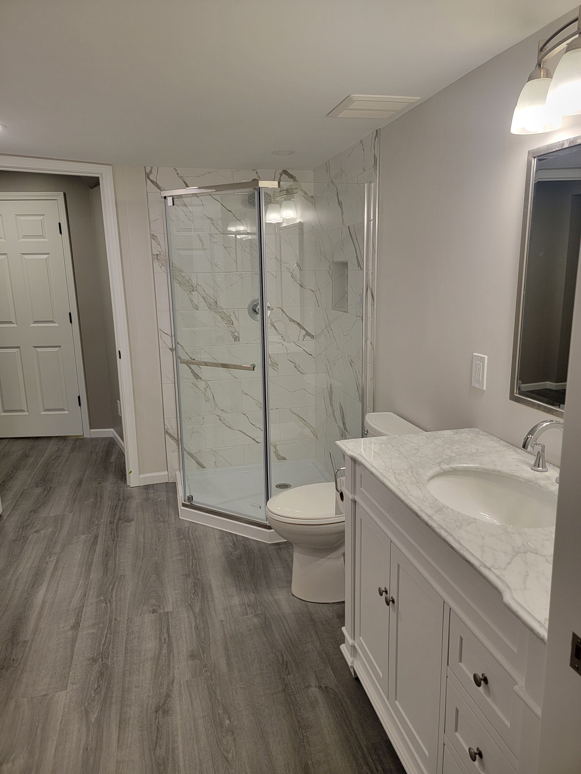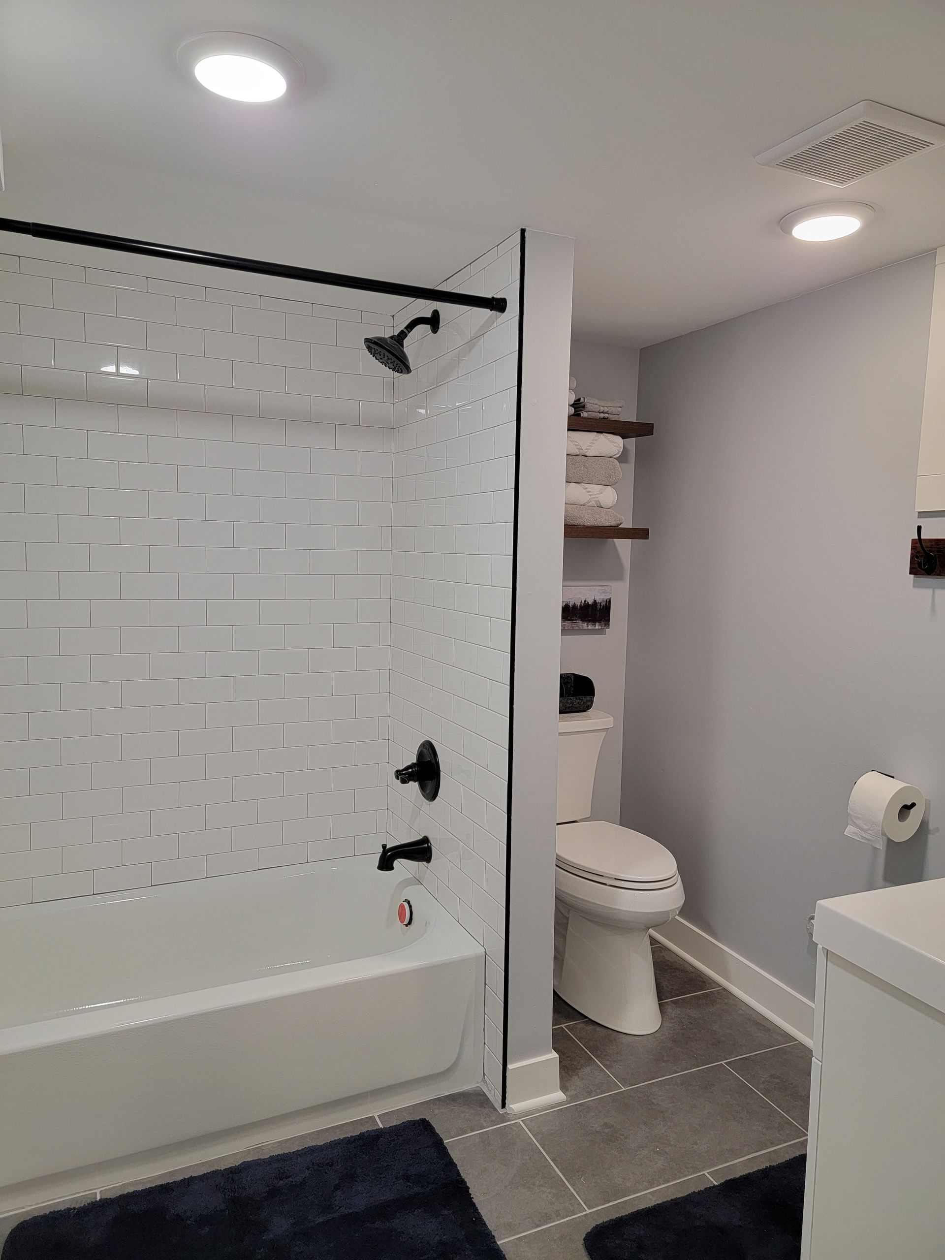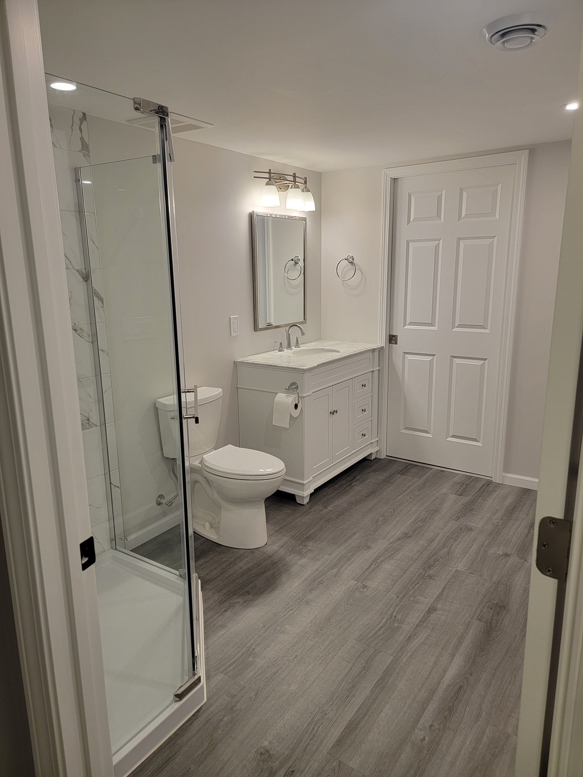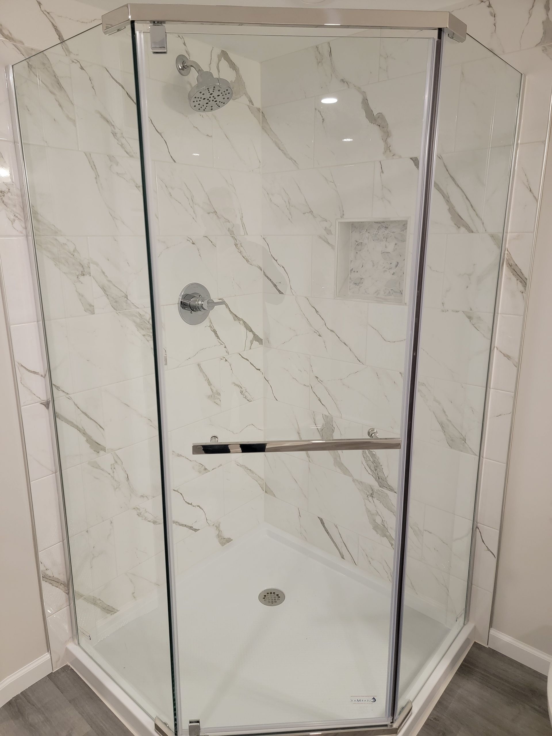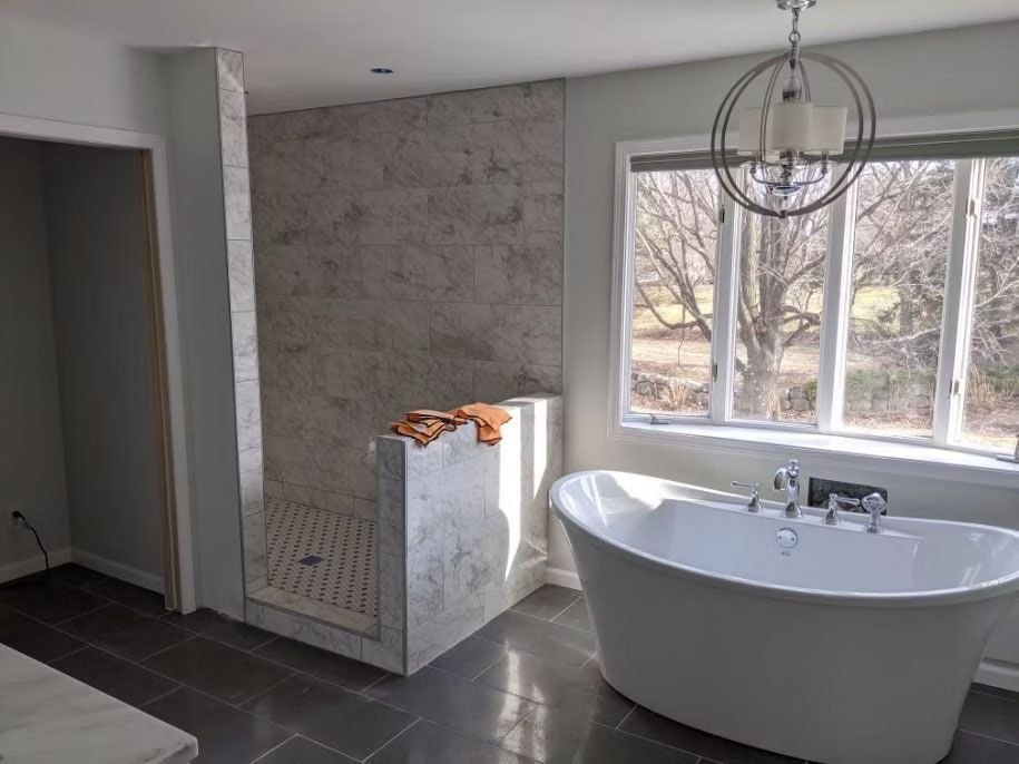Our team specializes in precision tile work for floors, walls, and showers, along with custom cabinetry and high-end fixture installation. Whether it’s a walk-in shower conversion, a new vanity and sink setup, lighting and plumbing upgrades, or a complete remodel, we manage the entire process seamlessly.